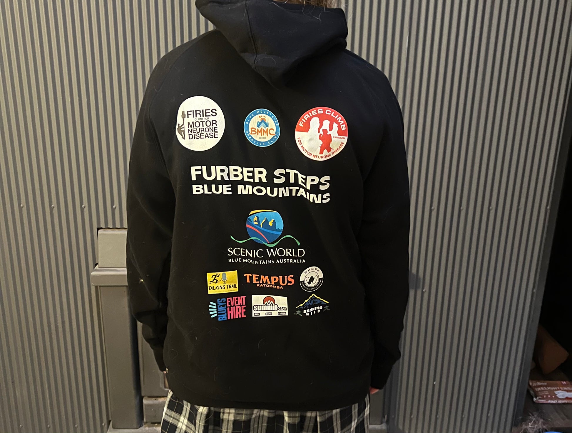 Black T-Shirt - Commemorating the 2025 Firies Climb Katoomba for Motor Nerone Disease. Taking Place at Scenic World and the Furber Steps, this year marks the 10th year of raising awareness.