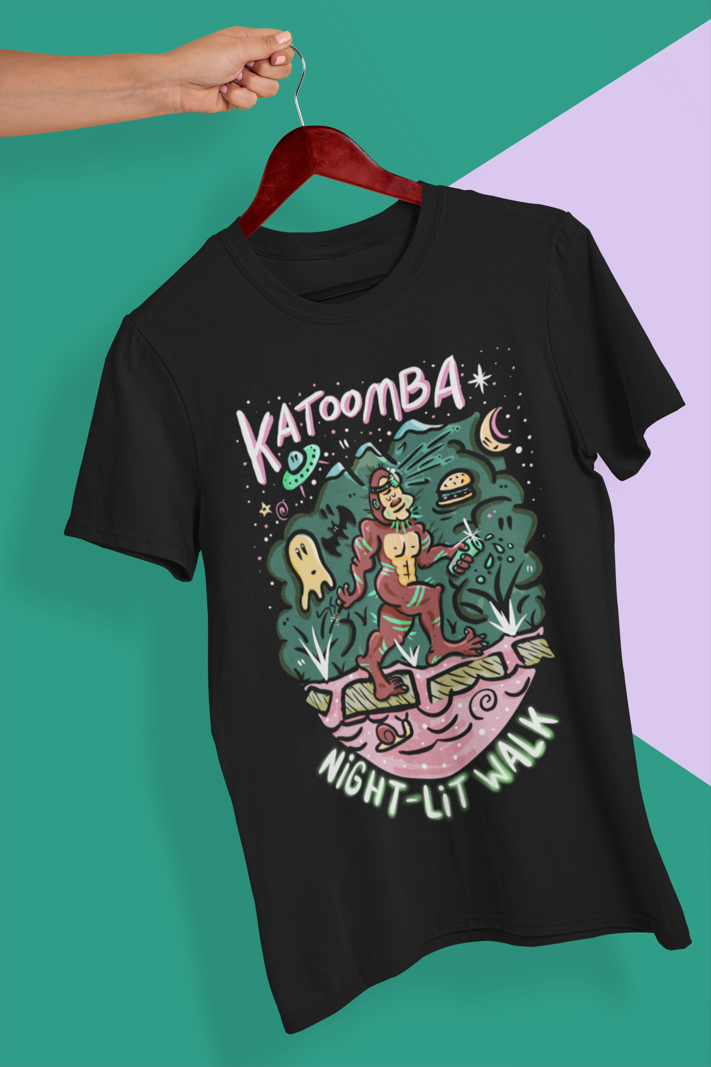 Featuring our beloved yowie at the Cascades, wear this one day or night and show your love for K-Town after dark!